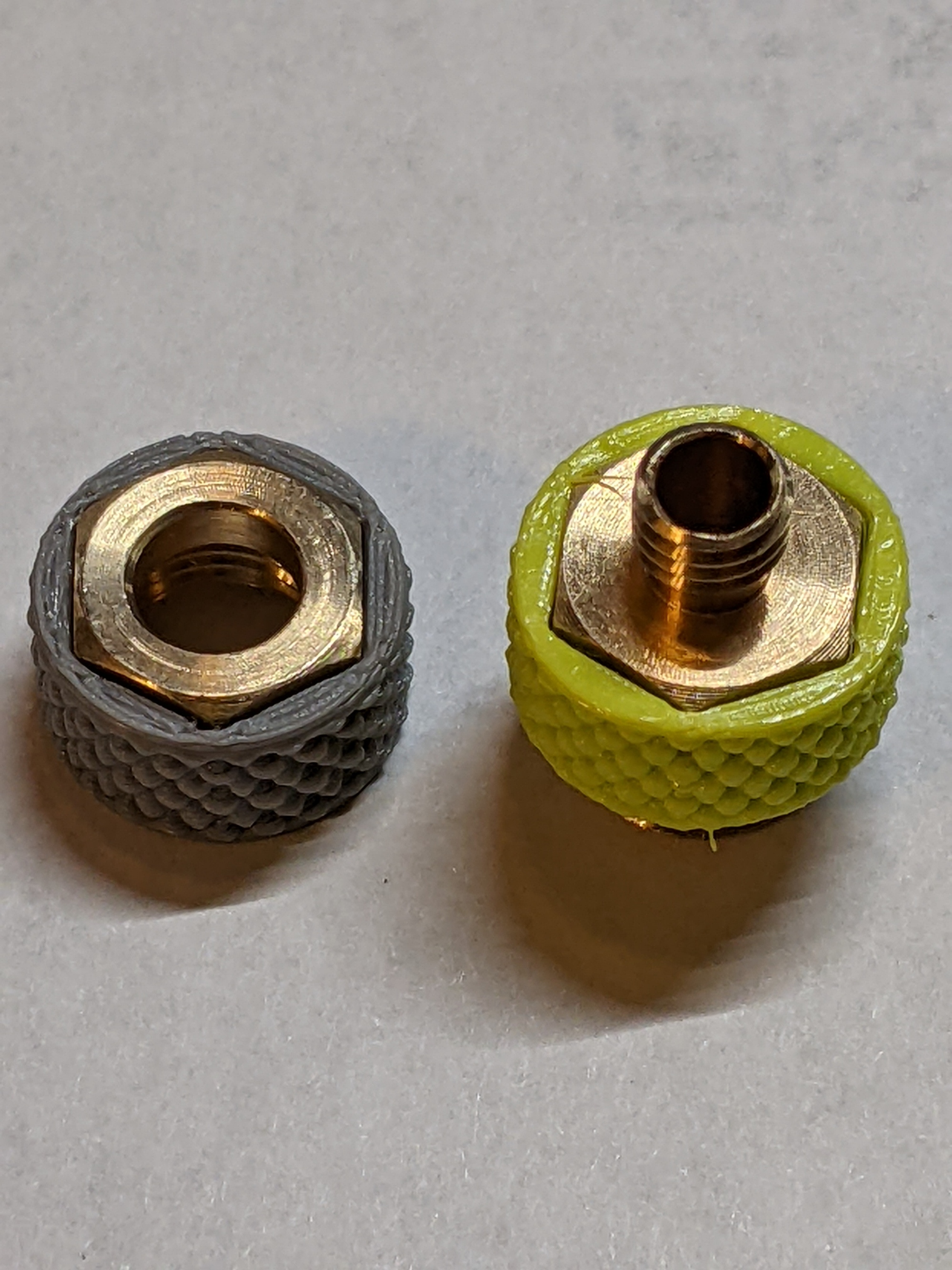 threading_tool_small.stl This is a small tool to help thread the lemon onto the PTFE tube. it is shaped like a nut with a hex opening in the center and a knurled outside edge for easy gripping.